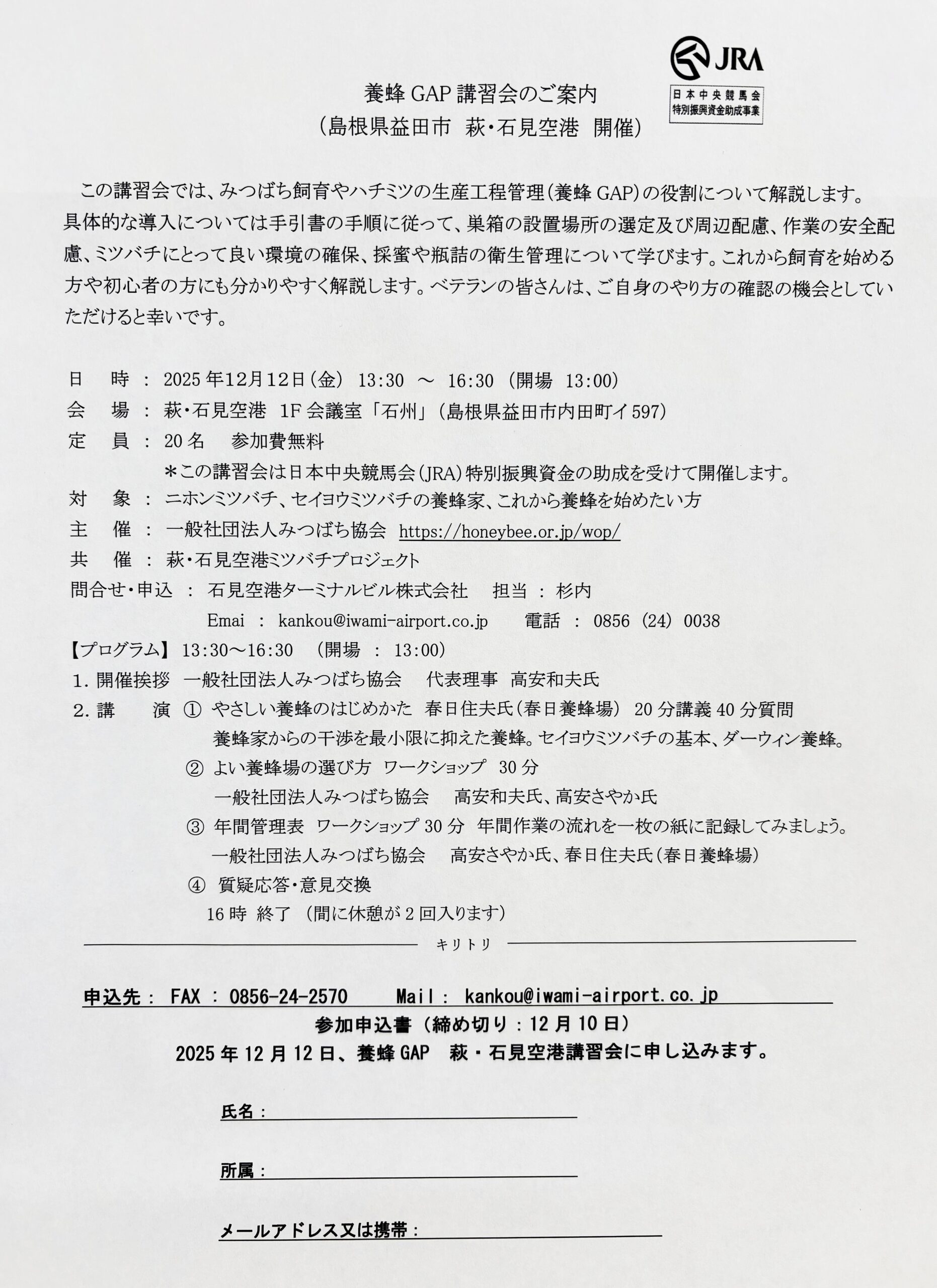 R7.12月 養蜂講習会 開催のお知らせ