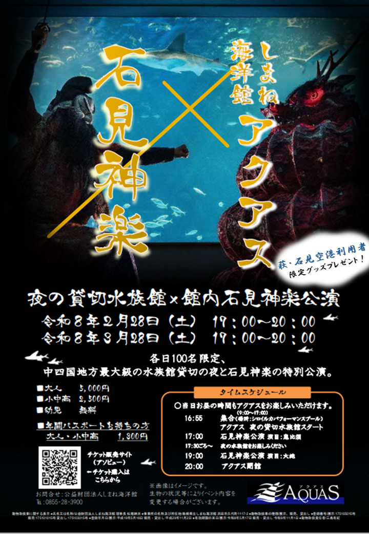 【各日100名限定】2日限り水族館貸し切りの夜と石見神楽の特別公演のお知らせです。